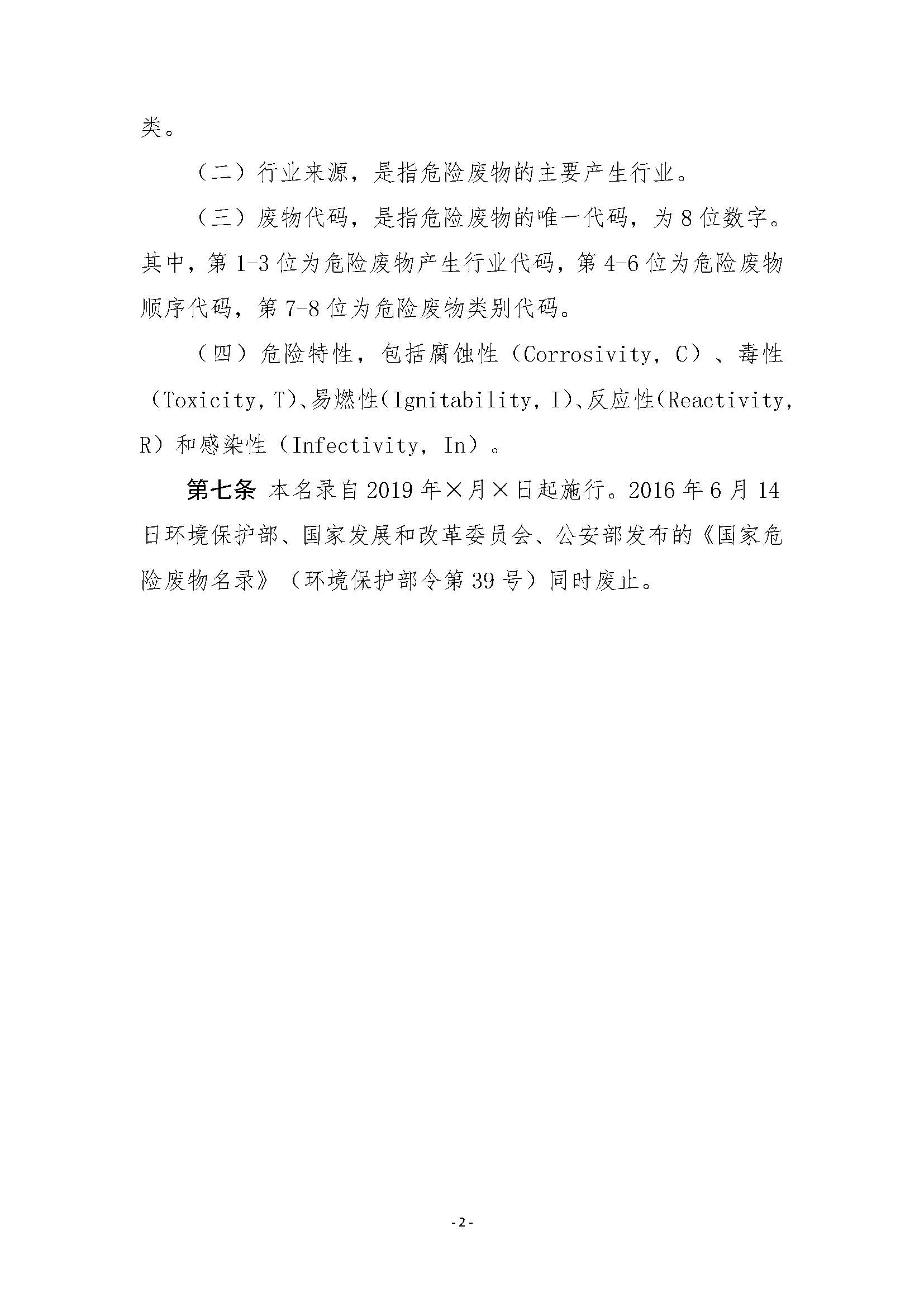 为贯彻落实《中华人民共和国环境保护法》和《中华人民共和国固体废物污染环境防治法》,加强危险废物环境管理,我部组织编制了《国家危险废物名录(修订稿)》(征求意见稿)。现印送给你们,请研究提出书面意见,并于2019年10月10日前反馈我部。