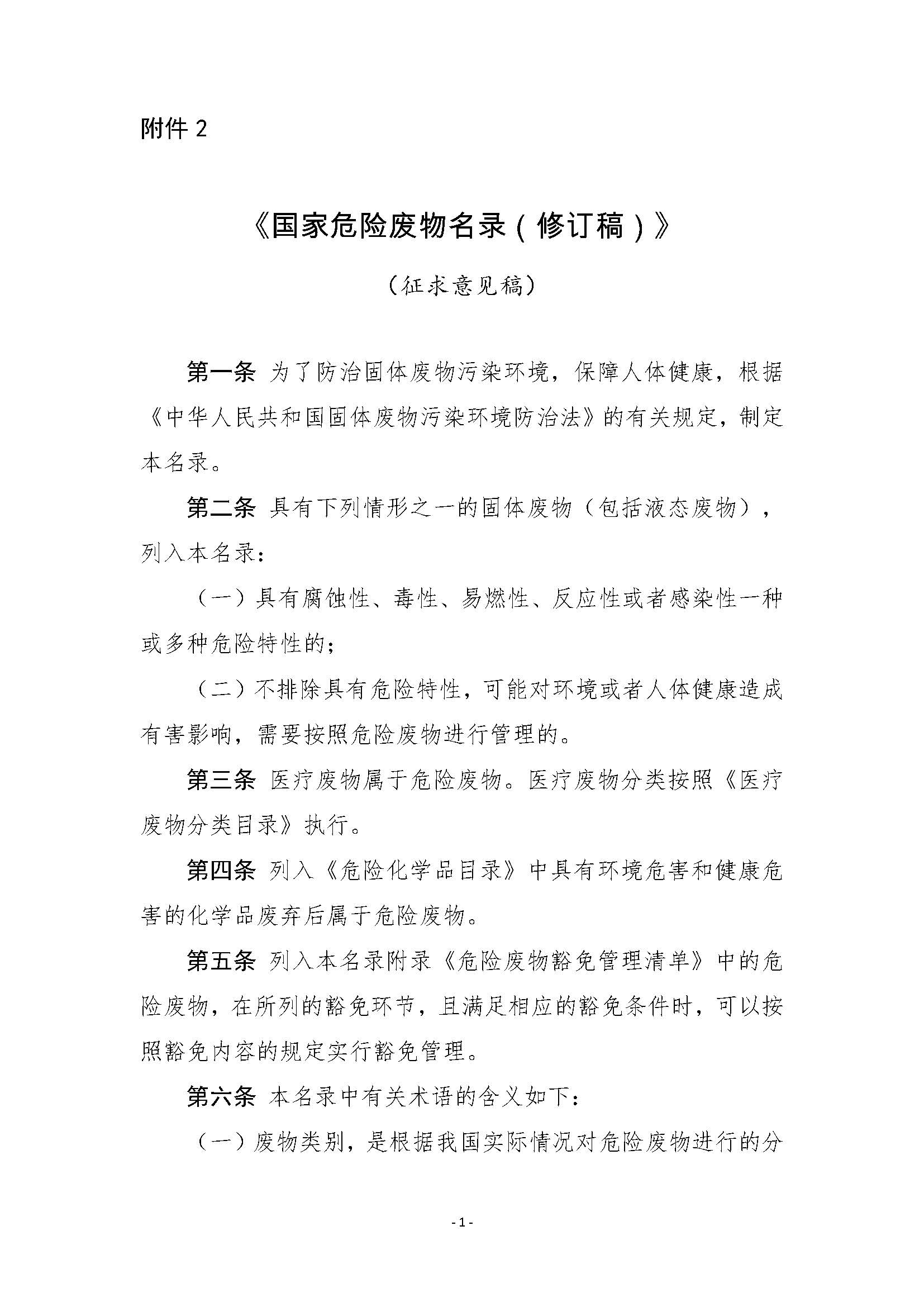 为贯彻落实《中华人民共和国环境保护法》和《中华人民共和国固体废物污染环境防治法》,加强危险废物环境管理,我部组织编制了《国家危险废物名录(修订稿)》(征求意见稿)。现印送给你们,请研究提出书面意见,并于2019年10月10日前反馈我部。